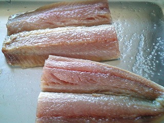 1.秋刀魚の小骨を取り除き、長さ2等分に切り、塩と酒をまぶしつけ下味をつけます。