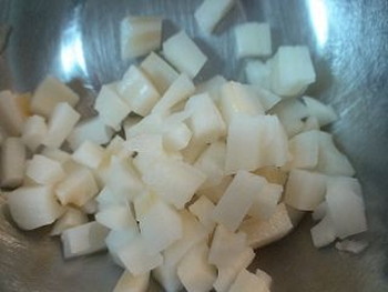 1.パンケースに水、レンコン(すりおろし)を入れて、砂糖、塩、スキムミルク、バターを入れます。