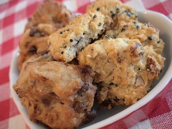 今回は砂糖を半分に減らして、塩を少し多めに加えて作ってみました。ゴマやクルミが香ばしくて、やっぱり美味しいです!このクッキー!