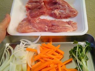●箸で食べやすいように、私は鶏肉を切ってから盛りつけました。