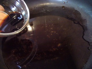 4.鍋に(A)のだし汁、みりん、しょう油、バルサミコ酢を入れて煮詰めます。