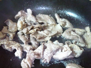 2.豚薄切り肉は3cmに切り、赤ワインをふって焼く直前に塩・こしょうします。