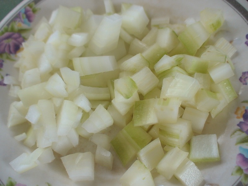 1.セロリ、タマネギは1cm角切り。ニンニクはみじん切りにします。