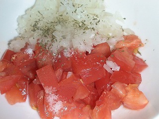 1.トマトは種を取り除き、粗みじん切りします。
