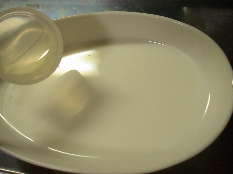 2.分離しはじめたら、キッチンペーパーで漉します。