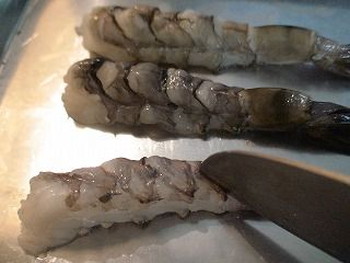 4.3のエビの両わき腹に斜めに細かく切り込みを入れる