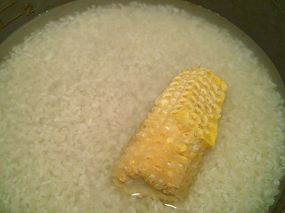 ※芯も一緒に炊くことで、トウモロコシの風味がつきます。