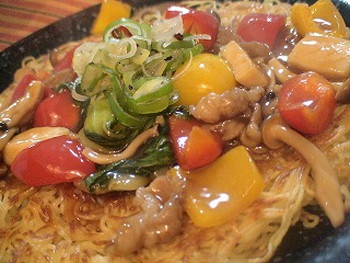 【豚とイカの黒酢あんかけ焼きそば】