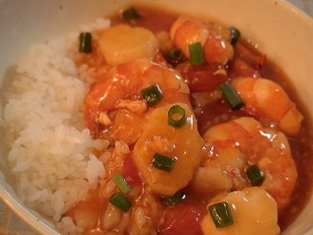 ウチゴハン・山芋とトマトの入った【プリプリエビチリ丼】レシピ