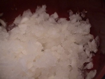 ●レンコンを食感を残す程度の粗みじん切りにする。ショウガ、ニラをみじん切りにする