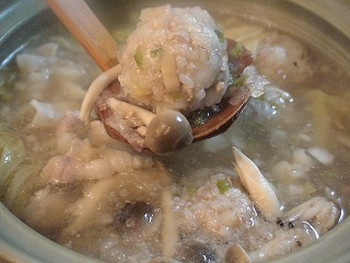8.豚バラ肉、4の団子に片栗粉をまぶしてから鍋に加え煮込む。