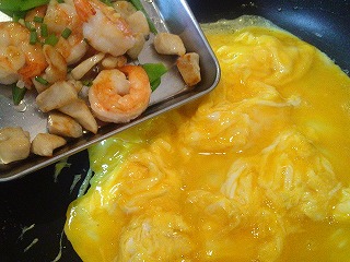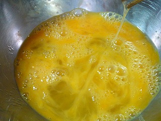 ※卵は調味料を入れてから溶きほぐし、溶きすぎないようにします