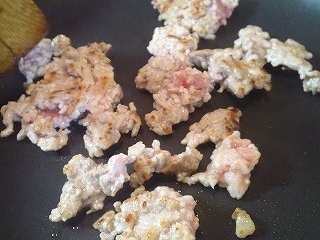 ※ひき肉を炒めるときは、焼き色をつけて粗くほぐす。