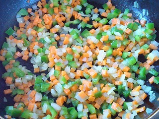 1.詰めものの玉ねぎ、にんじん、いんげんは5mm角に切り、フライパンにバターを熱し、塩、こしょうをし、弱火でしんなりするまで炒めて冷まします。