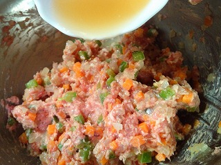 肉だねにブイヨンスープも加えるところが初めて!おかげで、中身がやわらかくて美味しかったです~(*^。^*)