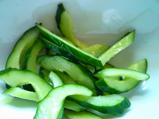 ※きゅうりは塩をまぶしてしばらく置き、余分な水分を出す。