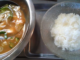 炊きたての温かいご飯に、冷たい冷や汁をかけて、胃に負担の少ない体にやさしい【冷や汁ご飯】でした。