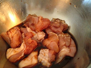 ※鶏肉に調味料をまぶしてしっとりやわらかくさせる。