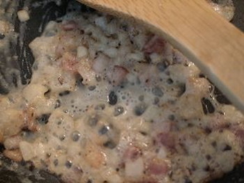 ※細かく刻んだベーコン・玉ねぎに小麦粉がくっつくことで、ダマになりにくい