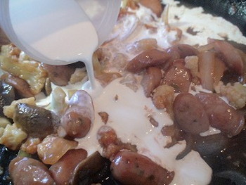 5.ケチャップ、生クリームを加えて混ぜる。ソースの完成!