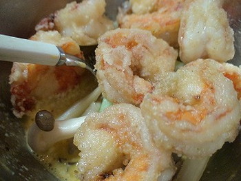 6.160℃の油で、エビを1分ほど揚げるkantanebimayo2