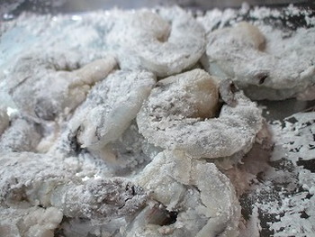 3.2のエビに片栗粉(大さじ1.5)を加えて揉み下味の完了。