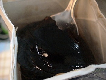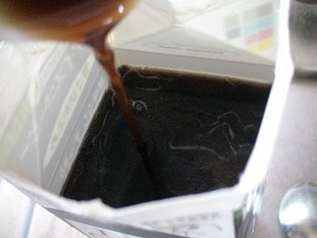 litrejelly34.3を紙パックに戻し入れて、よくかき混ぜて、封を閉じて、冷蔵庫で約5~6時間冷やす(写真右)