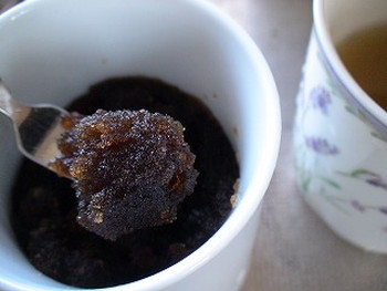 3.2のカップに冷たいジュース(50ccくらい)を加え入れて、よくかき混ぜる(写真右)