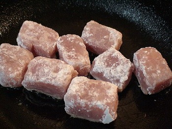 1.カジキマグロは水気を拭いて一口大に切って薄力粉をまぶす。ししとうがらしはヘタの先を切り落とし、竹串などで数か所穴をあける。
