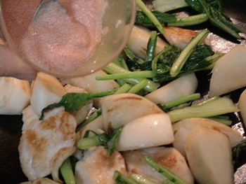 炒める直前に、小麦粉を軽くまぶしてみました。