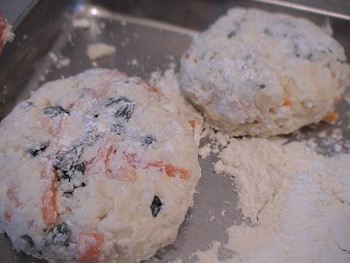 6.5を8等分にし、俵型に成形し小麦粉をまぶす
