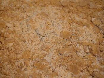 2.コーンフレークをポリ袋に入れてもみ、細かく手で砕いて、から揚げ粉と混ぜ合わせる