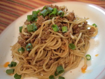 8.器に盛り付けて、万能ネギ、ラー油を散らし、お好みで粉山椒を加えて完成!