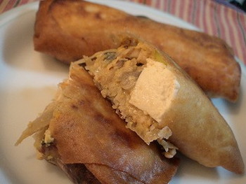 肉味噌のゴボウがよく、焼きうどんのクリーミーなカレー味が美味しかったです(⌒~⌒) 春巻きには豆腐が入って、驚きです!ボリュームがアップし、少し重い味噌味のきいた和風の春巻きでした。![]()