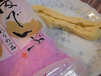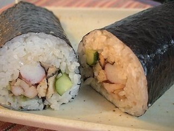 とりあえず、お昼に早速、太巻き(恵方巻き)を作ったのですが・・・卵や桜でんぶを巻き忘れてしまって、とっても彩りのさえない太巻きになってしまいましたぁ(T_T)