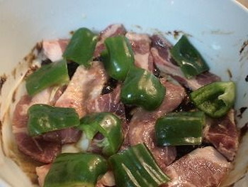 3.2の混ぜ合わせたタレの上に 1の豚肉を重ならないように置きます。