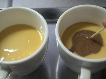型も普段のマグカップを使うので、即!作ってみました。が、思いのほか「おばけ」のように膨らみました!!!カップ7割ほどにおさえたつもりですが、かなり少なめに入れることをおすすめします。