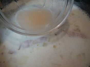 玉ねぎが透き通ってくるまで炒める。小麦粉をふり入れ、弱火にして粉っぽさがなくなるまで炒める。牛乳を少しずつ加え、2の蒸し汁も加えてとろりとするまで混ぜながら煮て、塩、こしょうで調味する。