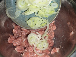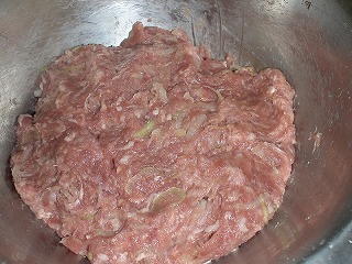 ※ひき肉もボールも冷たく冷やしてから調味料を加えて粘りを出してから卵を加えること