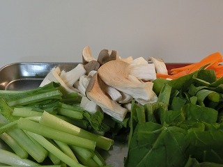 ※小松菜は根元を先に炒め、火が通ったら(茎にツメが入る位)葉先を加えます。