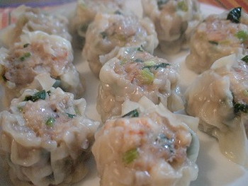 エビの食感がいいシューマイで、美味しかったです(⌒~⌒) 包み方がいつも同じになってしまいますが、巾着型はもう少し上部を引き締めて、具が盛り上がった形でした