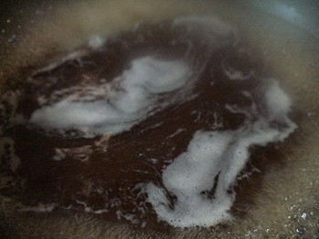 2.だし汁、しょうゆ、薄口しょうゆ、砂糖、酒、みりん合わせて煮立たせ、落しぶたをして煮汁がほとんど無くなるまで煮詰める。