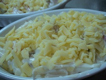 ※チーズは細かく切ると盛った時、器の端までまんべんなく敷き詰められ、あふれるチーズいっぱいに焼き上がり、おいしさが増す