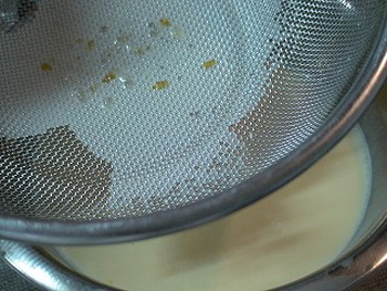 4.1の卵液に3の牛乳、生クリームを加えよく混ぜる(写真右)