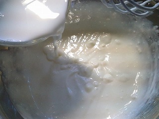 2のボウルに加えて、なめらかになるまでよく混ぜます。