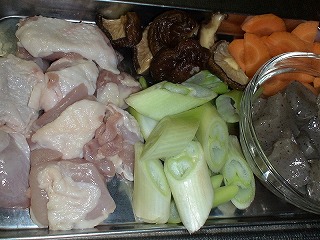 長ねぎを2cm幅の斜め切りにし、鶏肉は3cm大に切ります。