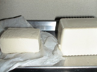 水切り過ぎると、ボソボソになるので、重しは軽めのものにする。