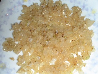 玉ネギが焦げつく手前で、少量の水を加えてさらにしんなりするよう炒め、薄茶色になったら、取り出して冷ます。