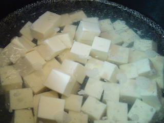 ※塩を加えたお湯で豆腐を湯がくことで、崩れにくく、プルプルになり、さらに臭みも抜ける