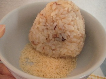 3.2のおにぎりにパルメザンチーズをまんべんなくまぶして出来上がり!